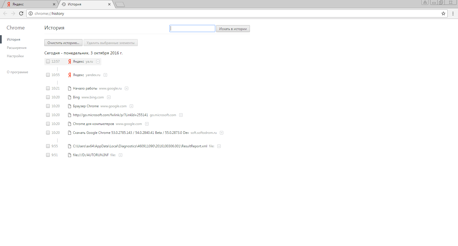 В Yandex Browser по аналогии с Chrome посещенные страницы сортируются по дате. Но в то же время доступна функция поиска, чтобы в любой момент найти интересующий ресурс.
