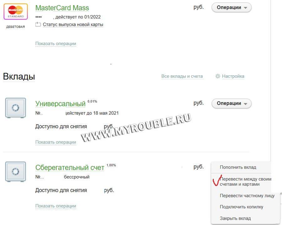 Важно: нельзя перевести средства с вкладов, которые не предполагают частичного снятия, например, депозитов линеек Сохраняй и Пополняй. Их можно только полностью закрыть.