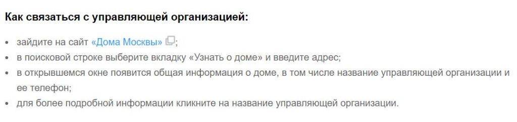 Чтобы связаться с управляющей организацией, нужно войти на сайт «Дома Москвы»