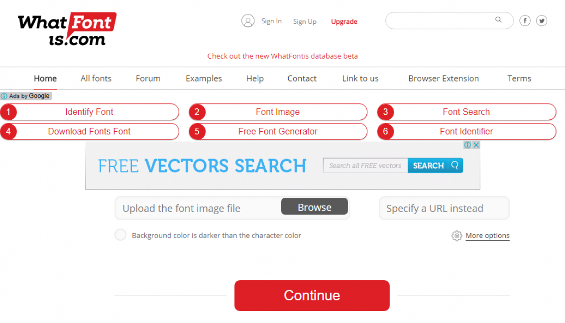 Whatfontis — замечательный сервис, который поможет не только определить шрифт, но и отсортировать результат по стоимости! Если найденное начертание оказалось платным, то данный сайт поможет найти максимально приближенный к нему внешне, но бесплатный, или хотя бы имеющий меньшую стоимость.