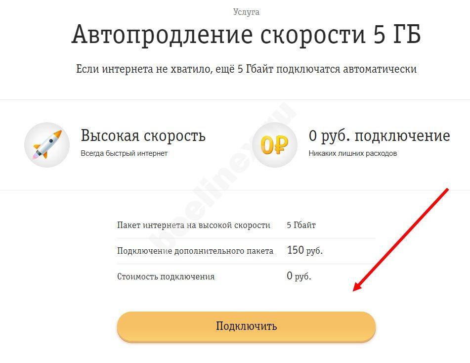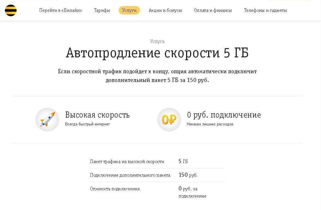 Стоимость Билайн продли скорость 5 гб- 150 рублей.