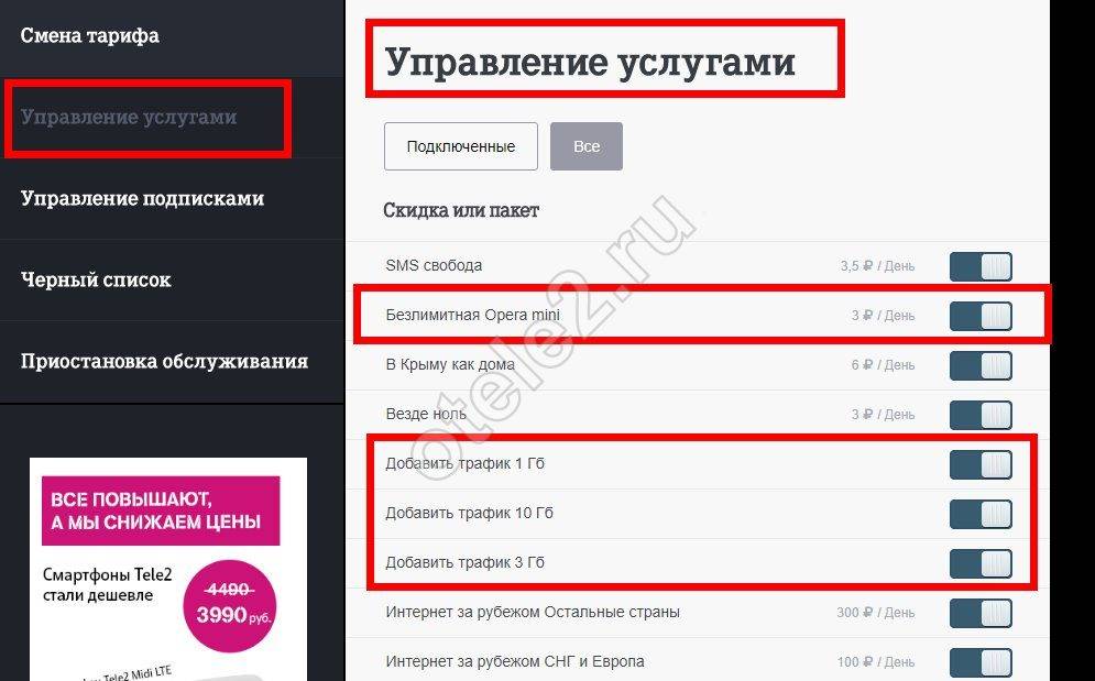 Действующим абонентам Tele2 достаточно выбрать необходимые опции в личном кабинете на сайте tele2.ru или в мобильном приложении. Это бесплатно. Списывается только абонентская плата, поэтому стоит заранее проверить баланс. Изменить действующий тариф и проверить подключенные опции можно в любом салоне связи оператора.