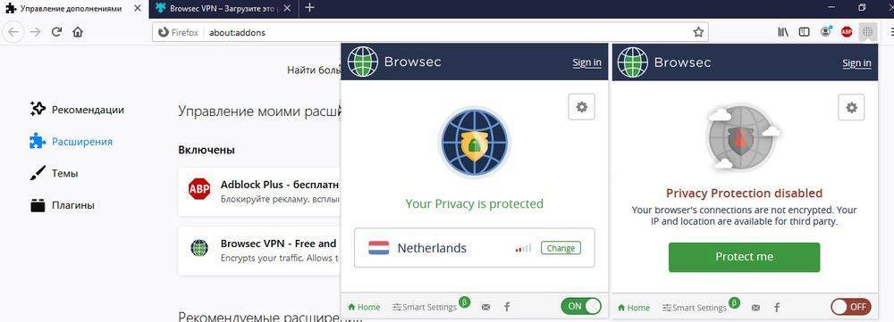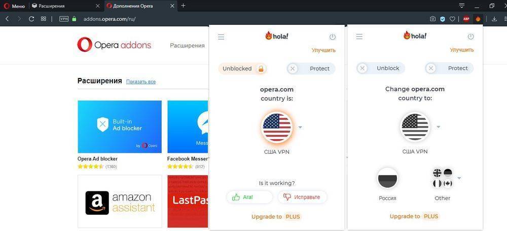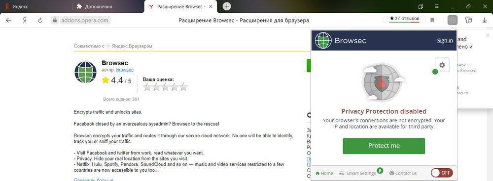 - VPN-расширение работает неполноценно из-за конкуренции от защиты Protect, блокирующей подозрительные интернет-ресурсы.