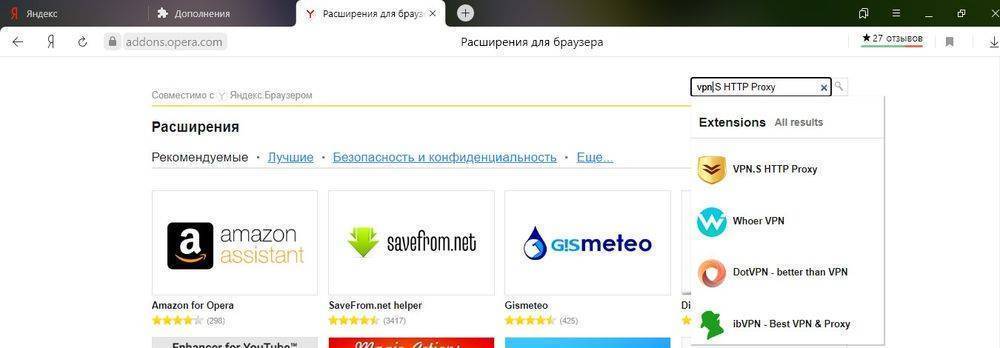 Способ 2. Установка VPN-расширения для Яндекс.Браузера