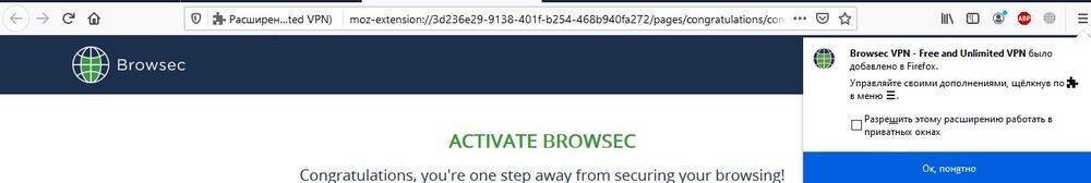 После установки дополнения в любой браузер конкретный VPN может потребовать ввод емейла для активации, и пропустить этот шаг нельзя. При желании вписать адрес электронной почты или удалить расширение и установить другое.