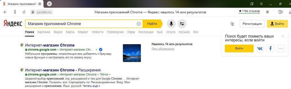 Если в каталоге Яндекс.Браузера не будет конкретного сервера, рекомендуется установить его через магазин Chrome.