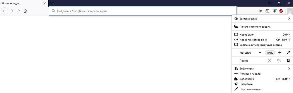 В браузере открыть меню (три горизонтальные линии, расположенные вверху справа) и выбрать «Дополнения». Также это можно сделать с помощью комбинации клавиш Ctrl+Shift+A.