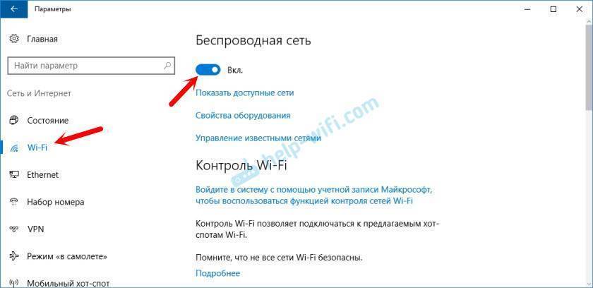 Ну а если у вас нет этих кнопок и вкладок в настройках, то смотрите первый раздел этой статьи, или отдельную инструкцию: Как включить Wi-Fi в Windows 10, когда нет кнопки Wi-Fi и ошибка “Не удалось найти беспроводные устройства на этом компьютере”.