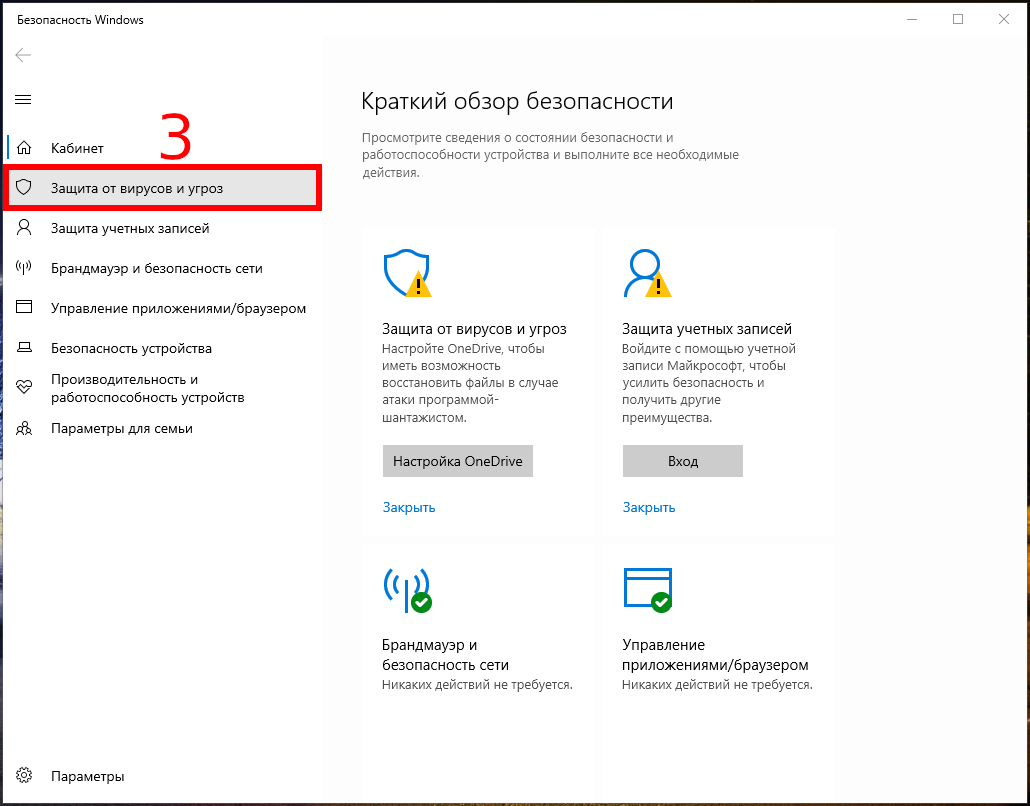 - Нажмите на «Защита от вирусов и угроз».
