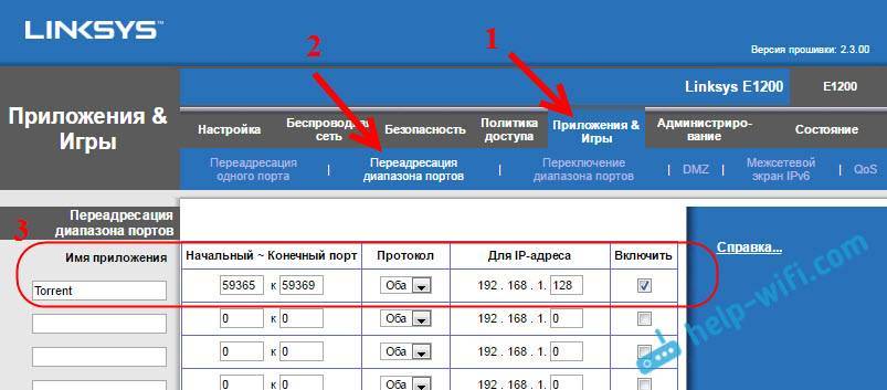 Для этого открываем вкладку «Приложения & Игры» – «Переадресация диапазона портов».