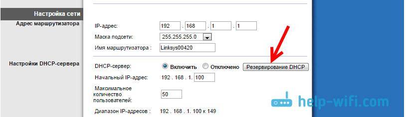 На главной странице настроек, напротив пункта «Настройки DHCP-сервера» нажмите на кнопку «Резервирование DHCP».