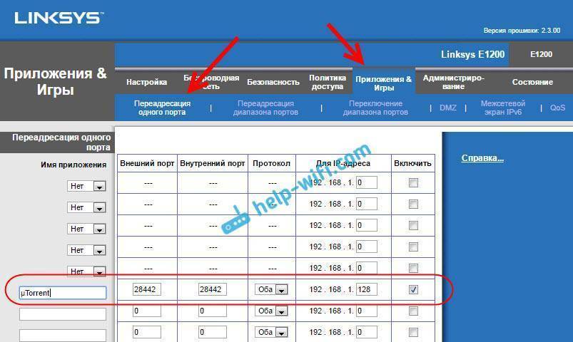 Перейдите на вкладку «Приложения & Игры». Если нам нужно открыть только один порт, то перейдите на вкладку «Переадресация одного порта». Там есть два варианта.