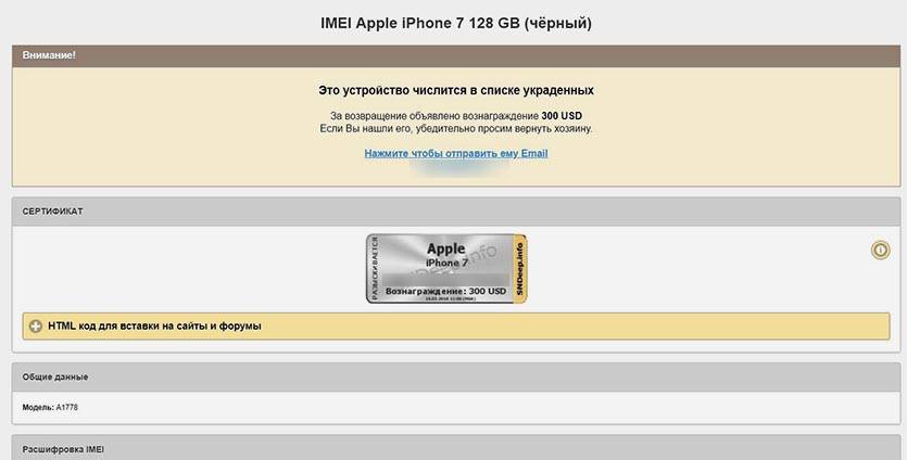 В качестве доказательства сбрасывают ссылку на сайт, где пострадавший может собственноручно обнаружить номер своего айфона в перечне украденных.