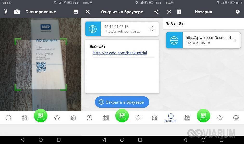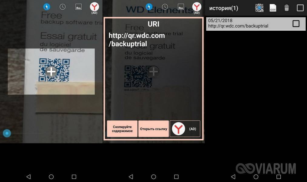 Приложения для считывания QR кодов для Андроид имеют одинаковый функционал, поэтому расскажем о двух проектах: