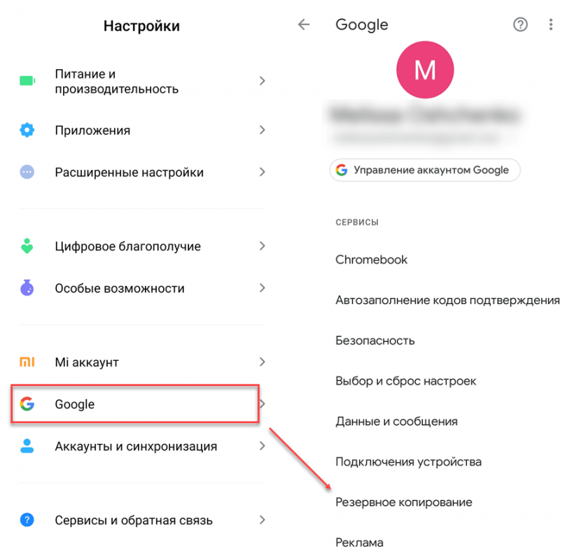 Если в аккаунте Google была включена функция резервного