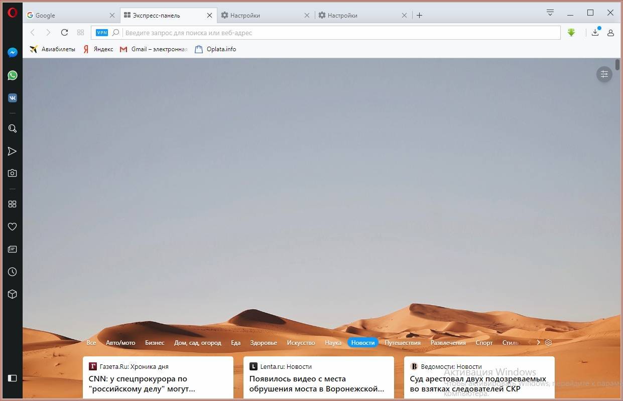 Обычно экспресс-панель в Опере включена по-умолчанию, однако если она отсутствует, выполните следующие действия:
