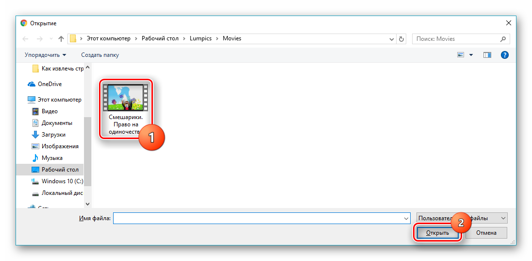 Выделите видео для последующей обработки и нажмите «Открыть» в том же окне.