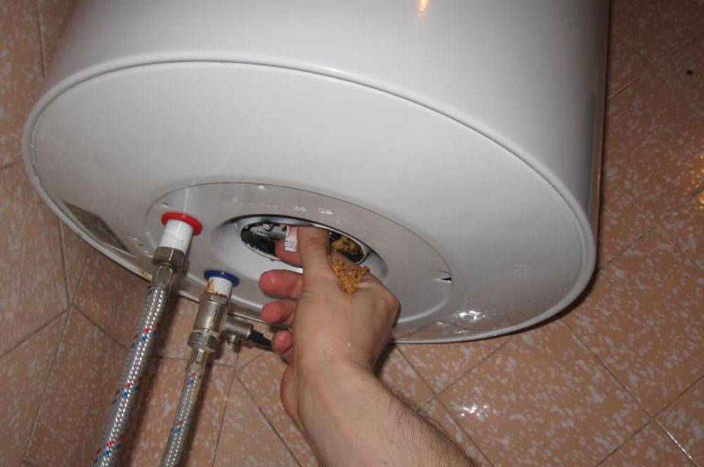 Поскольку внутренняя поверхность накопителя покрыта специальным защитным слоем, абразивное и механическое воздействие на нее крайне нежелательно. Как правило, основная масса известковых отложений и продуктов коррозии сосредоточена на поверхности ТЭНа и в области магниевого анода, поэтому для удаления накипи выполняют следующие операции.