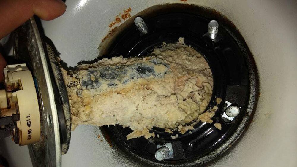 При наростах на стенках бака и деталях нужно обязательно снимать корпус, разбирать, вытаскивать и чистить элементы.
