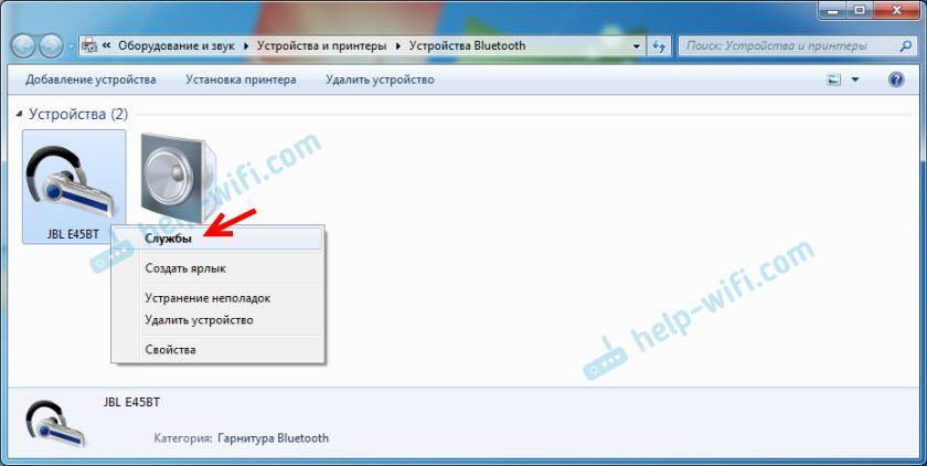 Включить, или отключить необходимые службы можно так же в свойствах Bluetooth наушников или колонки.
