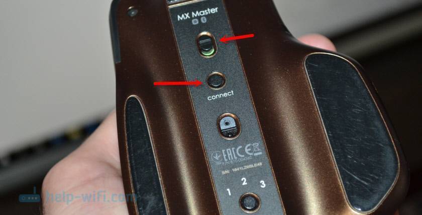 Включите мышку. Дальше нужно активировать режим подключения. Там для этого должна быть кнопка. На моей мышке она подписана как “Connect”. Ее нужно нажать (возможно, нажать и подержать) . Должен начать активно мигать индикатор. Процесс активации режима подключения конечно же может отличаться в зависимости от производителя и модели мышки. Смотрите инструкцию.