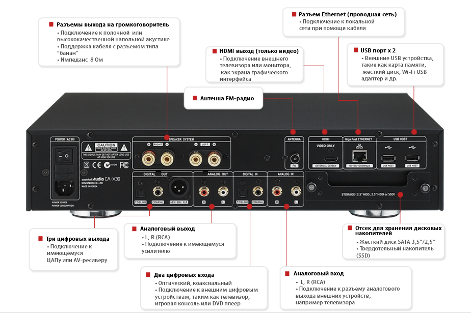 Покупка даст разнообразные интерфейсы ввода-вывода для видео- и аудиосигнала, сможет самостоятельно декодировать файлы и станет центром домашней развлекательной системы. Всегда можно подобрать модель с необходимым количеством подходящих входов — и RCA в ресиверах живее всех живых. Современные ресиверы поддерживают улучшенные алгоритмы распределения звука, в том числе Dolby Atmos, который умеет раскидывать любое число дорожек на любое число динамиков с учетом акустических свойств помещения.