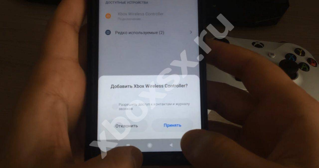 - В телефоне запустить поиск девайсов с включенным Bluetooth, после чего выбрать обнаруженный геймпад и выполнить сопряжение.