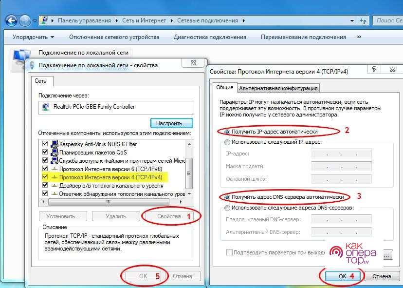 - Отыщите протокол TCP IPv4. Выделите и кликните по свойствам параметра. В новом окне поставьте автоматическую передачу информации.