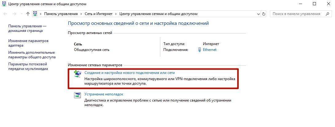 В появившемся окне выберете пункт «Создание и настройка нового подключения или сети».