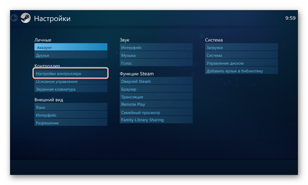 Если клиент определил Dualshock 4, то им сразу можно играть. В противном случае его придется включить. Для этого заходим в «Настройки» Steam.
