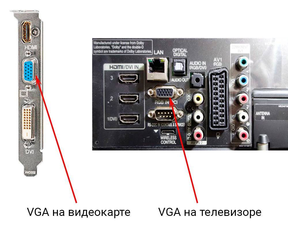Этот разъем обычно присутствует на старых компьютерах. Он передает видеоинформацию, но не транслирует звук. На современном телевизоре такой разъем встречается редко.