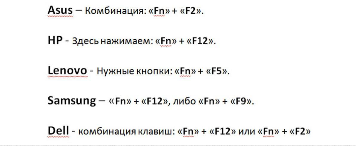 Комбинации клавиш для включения беспроводного модуля на ПК