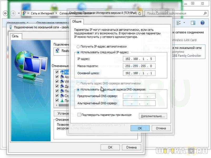 Для ее устранения в Windows заходим в «Центр управления сетями — Изменение параметров адаптера» и назначаем для выбранного типа расшаренного подключения вручную IP, маску и шлюз для коннекта к роутеру в соответствии с настройками вашей локальной сети.