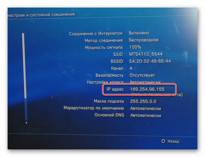 Через «Настройки сети» перейдите в раздел «Список настроек и состояний соединения». Тут необходимо запомнить или записать значение из строки «IP-адрес».