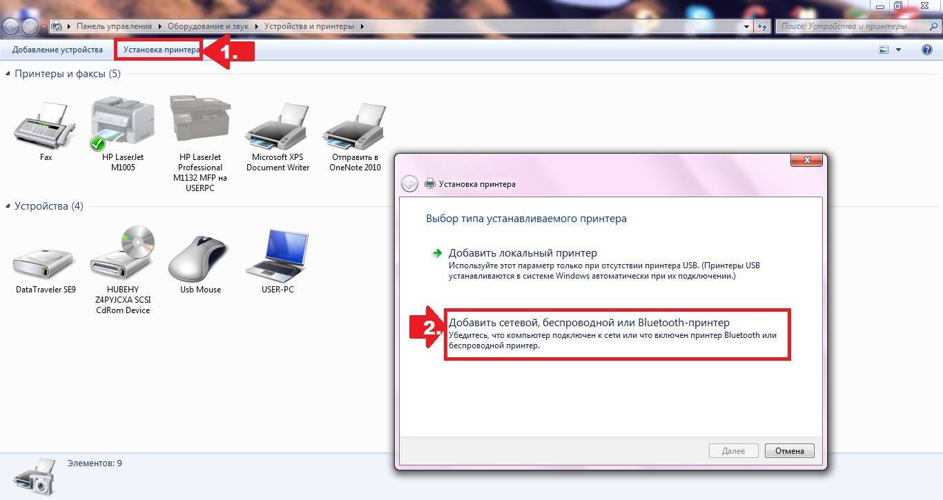 На самом деле Windows 7 не требует знания особых премудростей и не сильно отличается своими требованиями при установке принтеров от Windows 10. Тем не менее, некоторые различия всё же есть. В первую очередь необходимо также войти в «панель управления» — «оборудование и звук» — «устройства и принтеры». Вверху окна требуется нажать строку «Добавление принтера». В открывшемся мастере установок необходимо кликнуть на строку «Добавить локальный принтер» и перейти далее.