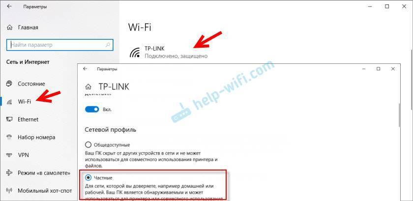 При подключении к роутеру по кабелю, или по Wi-Fi сети, Windows 10 присваивает подключению сетевой профиль: “Общедоступные” или “Частные”. Здесь все просто. “Общедоступные” – это когда компьютер подключен к общедоступной, чужой сети. Например, где-то в кафе, отеле, у знакомых дома и т. д. “Частные” – это подключение к домашней сети. Этот профиль желательно устанавливать только в том случае, когда вы подключены к своей сети (к своему роутеру, который надежно защищен. Смотрите статью максимальная защита Wi-Fi сети и роутера от других пользователей и взлома). В зависимости от выбранного профиля, меняются некоторые настройки общего доступа и брандмауэра.