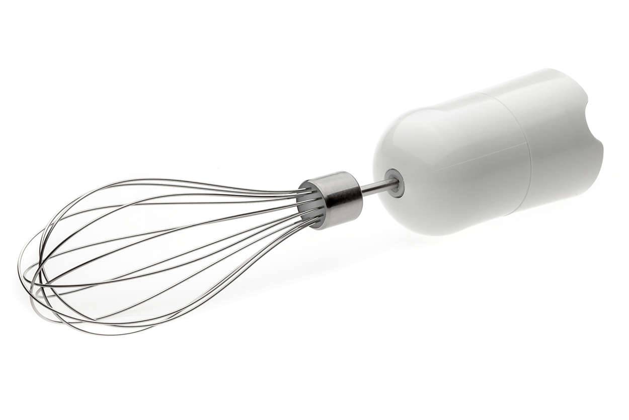 - венчик. Эта помощница отлично взбивает молоко, яйца до воздушной массы. Она требует бережного отношения. Венчик хоть и металлический, но его вращающийся наконечник легко может повредиться, если использовать его не по назначению;