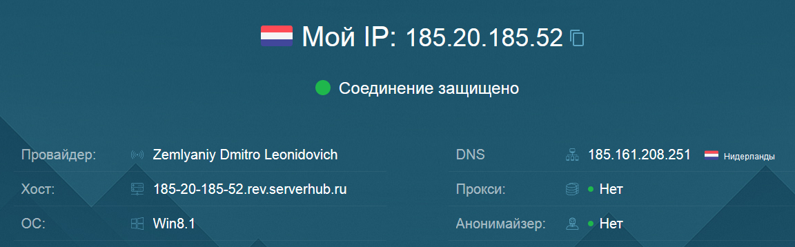 На этом можно закончить. Теперь при входе на любой сайт будут отображаться личные данные той страны, которая выбрана в настройках программы – приложение скрывает ваши настоящие данные. Проверить это можно любым онлайн сервисом для проверки ip адреса.