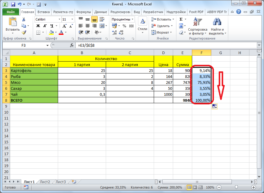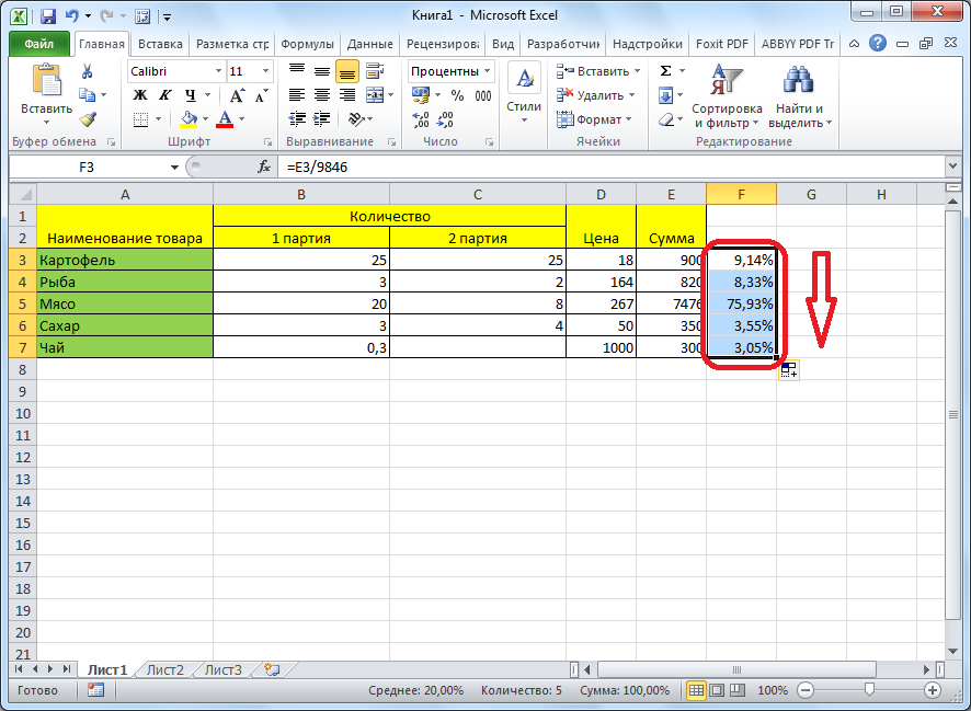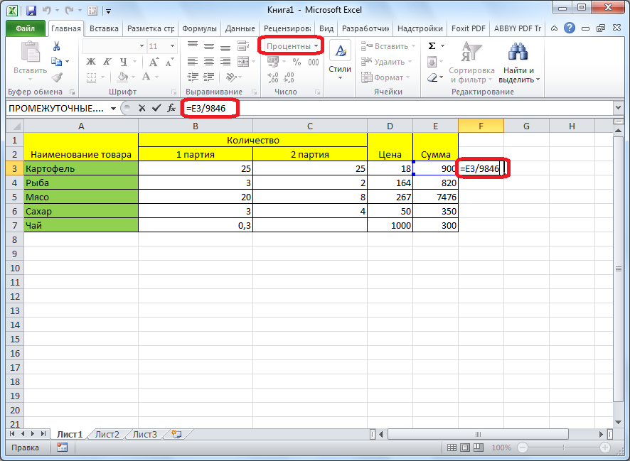 Теперь взглянем, как можно вычислять проценты, работая с табличными данными в ячейках.