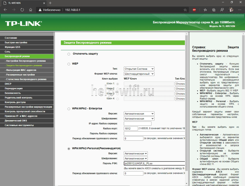 - Видим раздел «WPA/WPA2-Personal (Рекомендуется)».