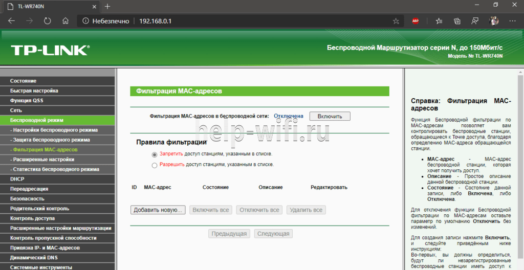 Блокировка Wi-Fi клиентов по MAC-адресу на роутере TP-LINK