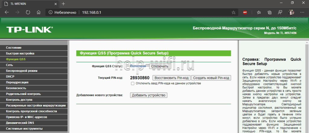 - Если не пользуетесь функцией WPS (для подключения через нажатие кнопки на роутере), отключите ее. Она еще может быть обозначена как QSS на некоторых моделях роутеров.