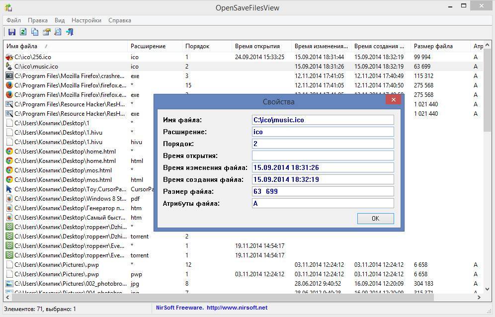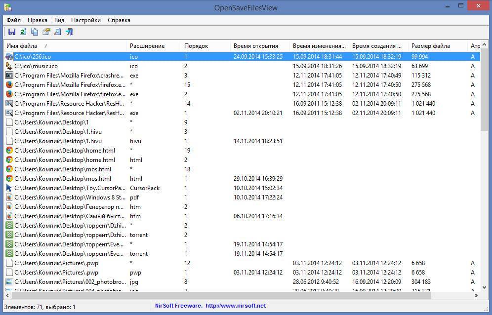 Также для просмотра недавно открытых файлов вы можете воспользоваться специальной утилитой OpenSaveFilesView (OSFV), разработанной компанией Nirsoft. OSFV работает напрямую с реестром, извлекая список «последних» файлов из подразделов OpenSavePidlMRU и OpenSaveMRU.
