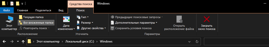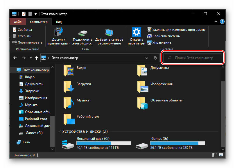 Находясь в «Проводнике», откройте вкладку «Поиск».