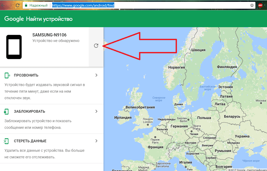 гаджета и нажмите на стрелку для обновления информации; - Сервис автоматически определит и укажет точку на карте.