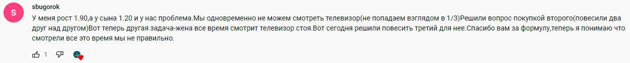 Чтобы высота была максимально комфортной для долговременного просмотра, есть четкие правила, формулы.