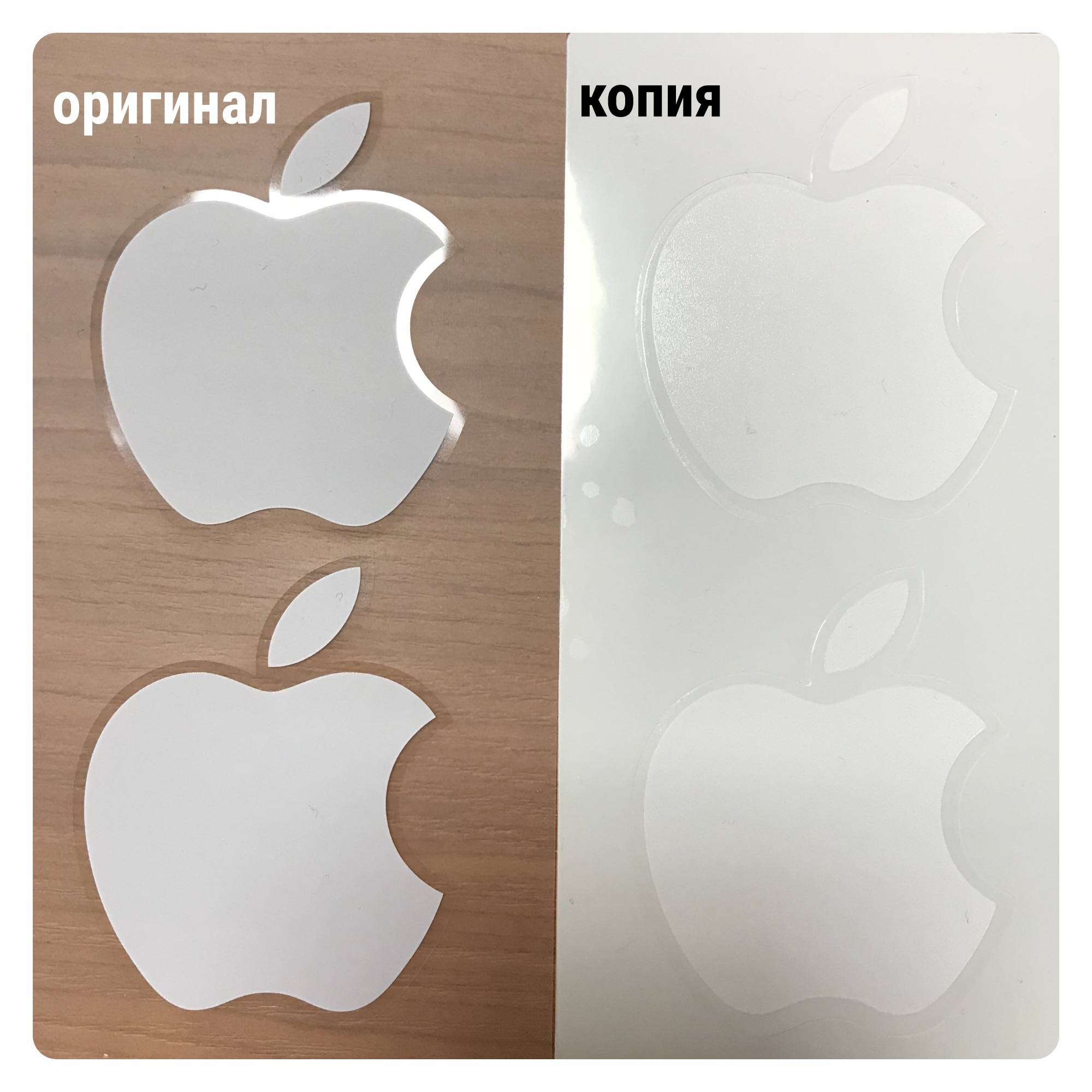 1.2. Коробки оригинальных айфонов комплектуются наклейками яблоками на прозрачной основе, коробки восстановленных телефонов на белой