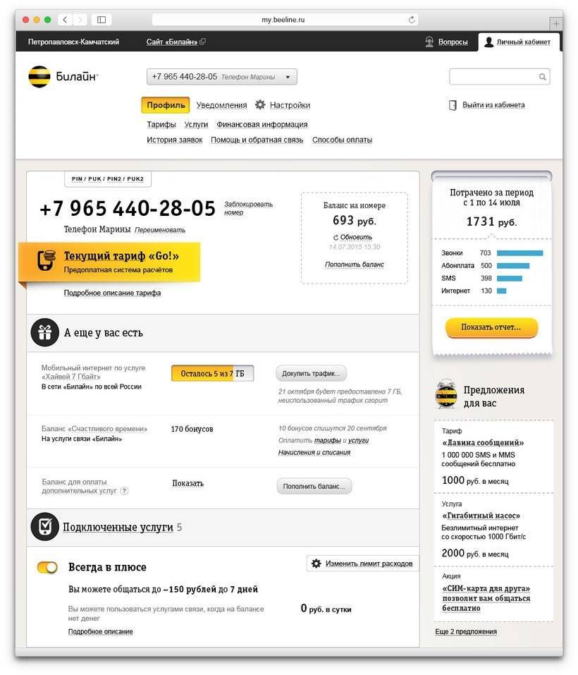 Управлять расходами из личного кабинета несложно, если есть доступ к интернет-страницам оператора. Для получения доступа к информации онлайн предварительно авторизуются в системе с официального сайта Билайн.