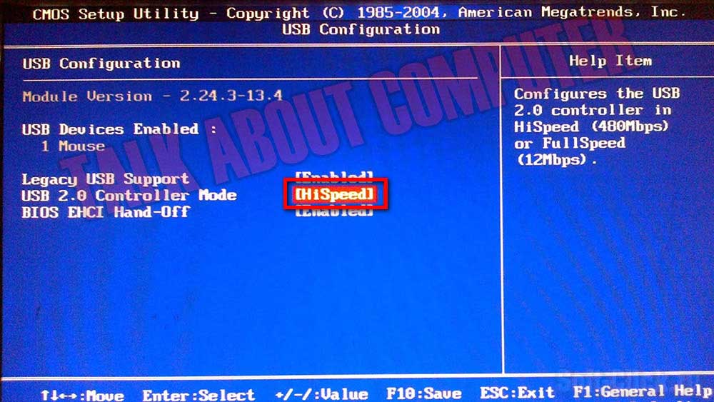 3. Отыскать пункт “USB Configuration” 4. Выбрать параметр “USB 2.0 Controller Mode” и надавить Enter 5. В открывшемся меню установить значение HiSpeed (480Mbps). 6. Опосля проделанных операций нажмите F10 и Esc. 7. Опосля этого комп перезагрузится, и скорость usb-порта обязана увеличиться.