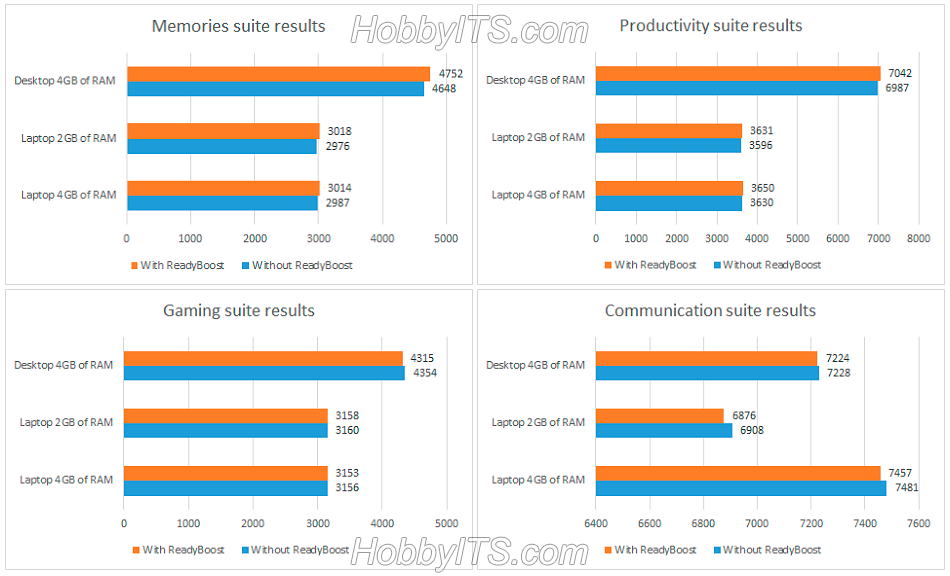 Результаты теста не впечатлят геймеров, ибо технология ReadyBoost показала минимальный прирост и никаким образом не окажет заметного влияния на производительность в играх.